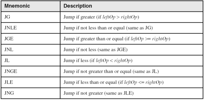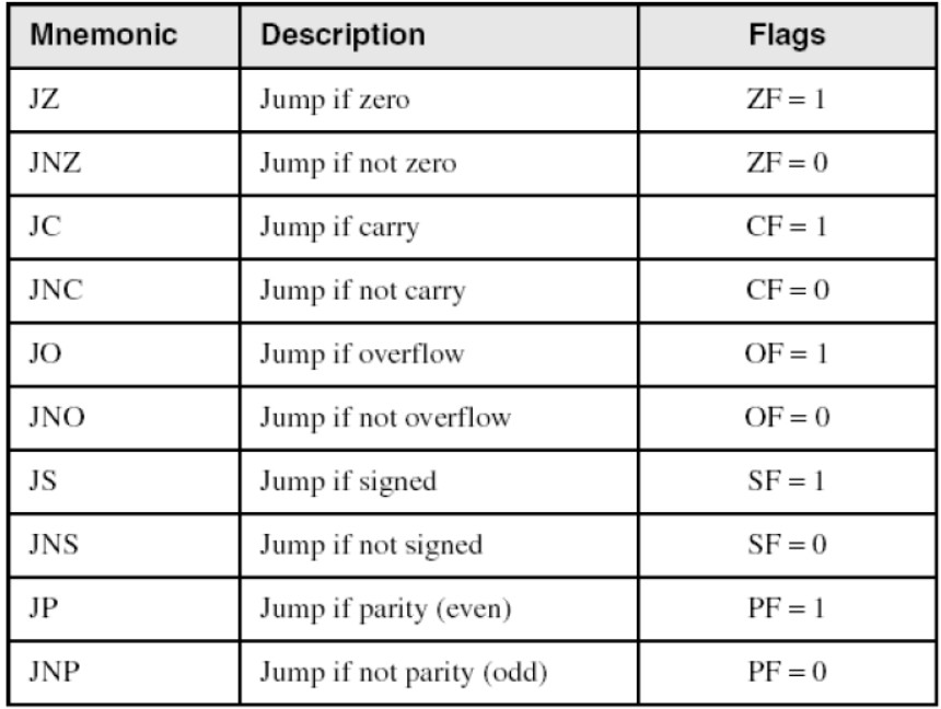 - JNE, JNZ jump to a label if the Zero flag is clear.