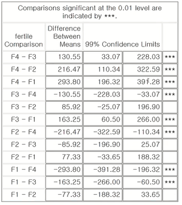 5> 결과 4 (means fertile / lines alpha=0.01 lsd)