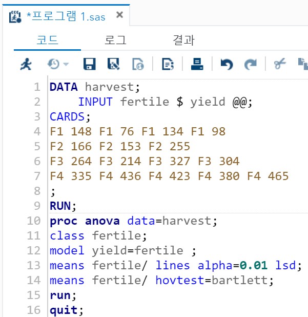 일원 분류 분산 분석을 수행하기 위한 Procedure