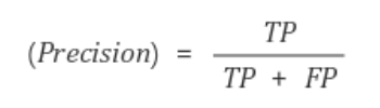 - TP(모델이 특정 class로 올바르게 판정) / TP + FP(모델이 특정 class로 잘못 판정)