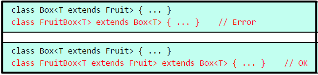 - 그래서 FruitBox<Fruit>에서 정의된 method를 FruitBox<Apple>에서 쓸 수 없습니다.
