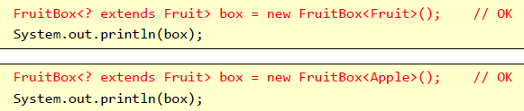 (parameterized type은 Fruit 혹은 Fruit의 subclass가 가능하게 설정)