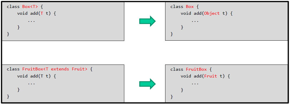 Type Parameter는 complier가 compile할 때만 존재하고 complie 완료 후에는 없어집니다.