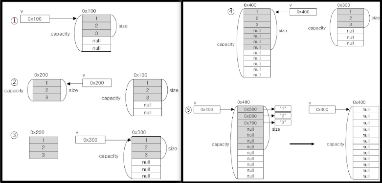 [1] Vector의 capacity를 5로 설정 후 1, 2, 3을 추가