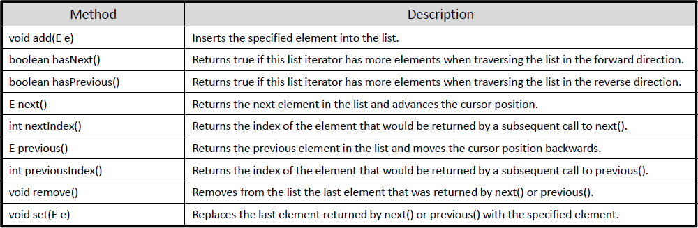 (뒤로만 갈 수 있었던 Iterator와 달리) 앞뒤로 왔다갔다하는 것이 가능합니다.